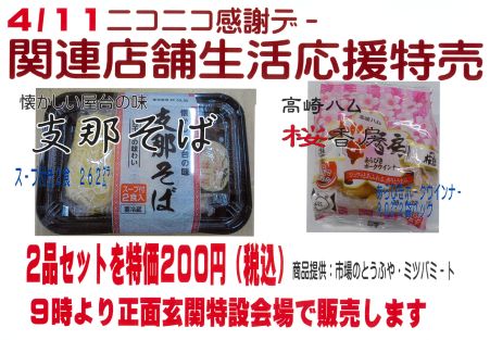 4月11日土曜日 ニコニコ感謝デーのお知らせ